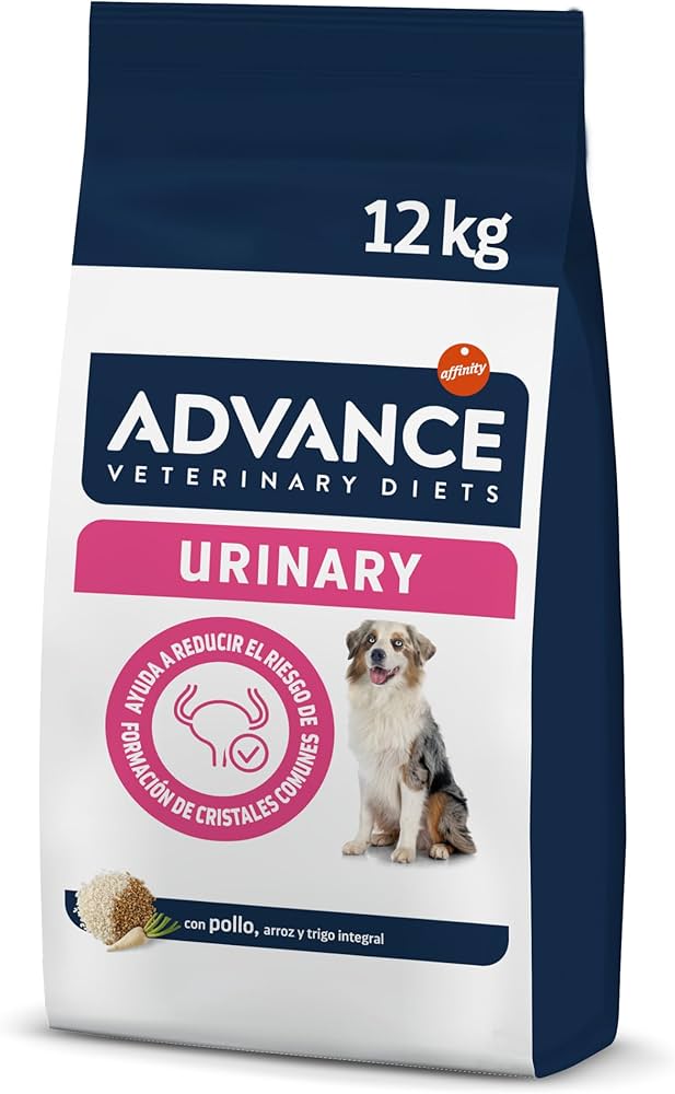 ADVANCE VETERINARY DIETS Urinary es un alimento dietético completo para perros, formulado con un nivel moderado de magnesio y propiedades acidificantes de la orina, indicado para reducir reaparición de cálculos de estruvita en la orina. Además, gracias a su gran sabor, es ideal para la alimentación diaria para perros que tienen tendencia a sufrir problemas de cristales de estruvita.