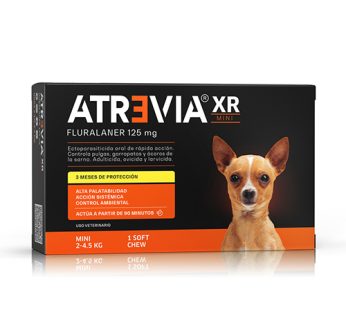 Atrevia XR Mini es un Ectoparasitida oral de rápida acción, controla pulgas, garrapatas y ácaros de sarna. Adulticida, ovicida y larvicida