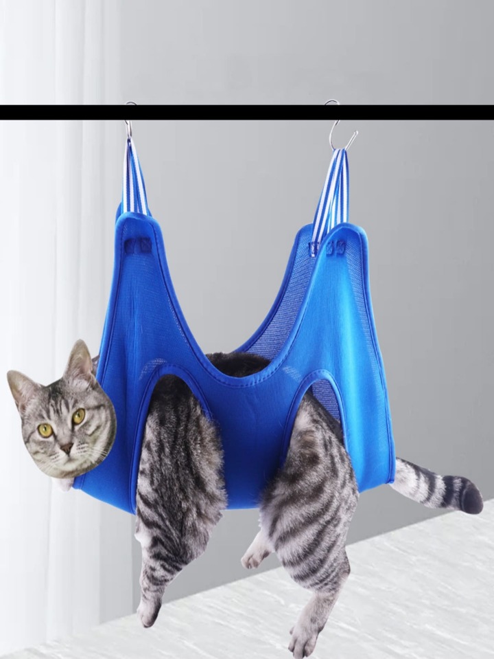 - La Hamaca de Aseo para Mascotas es perfecta para cortar uñas, bañar y peinar a tu gato de forma cómoda y segura.