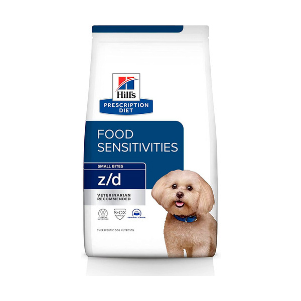 La sensibilidad e intolerancia a los alimentos son problemas potencialmente graves que pueden provocar irritaciones en la piel, el pelaje y las orejas o incluso molestias gastrointestinales. Perros que tienen reacciones adversas a los alimentos debido a una alergia a los alimentos (normalmente a una proteína del alimento) o intolerancia , se benefician de un alimento diseñado para las sensibilidades alimentarias. Los nutricionistas y veterinarios de Hill's desarrollaron la nutrición clínica Prescription Diet z/d Small Bites especialmente formulada para apoyar las sensibilidades alimentarias de los perros. De hecho, z/d Small Bites es una nutrición clínicamente probada para ayudar a evitar reacciones adversas a los alimentos.