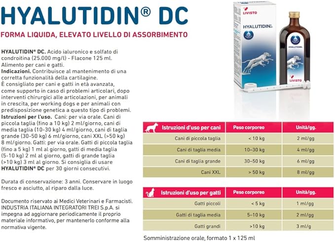 HYALUTIDIN DC Desórdenes musculoesqueléticos 125 ml – Solución Oral para Desórdenes Musculoesqueléticos en Perros y Gatos