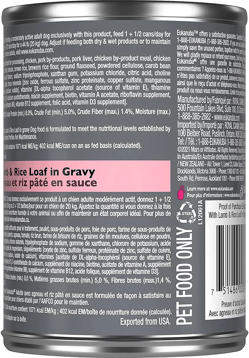 LATA EUKANUBA CORDERO Y ARROZ PERRO 13.2 OZ