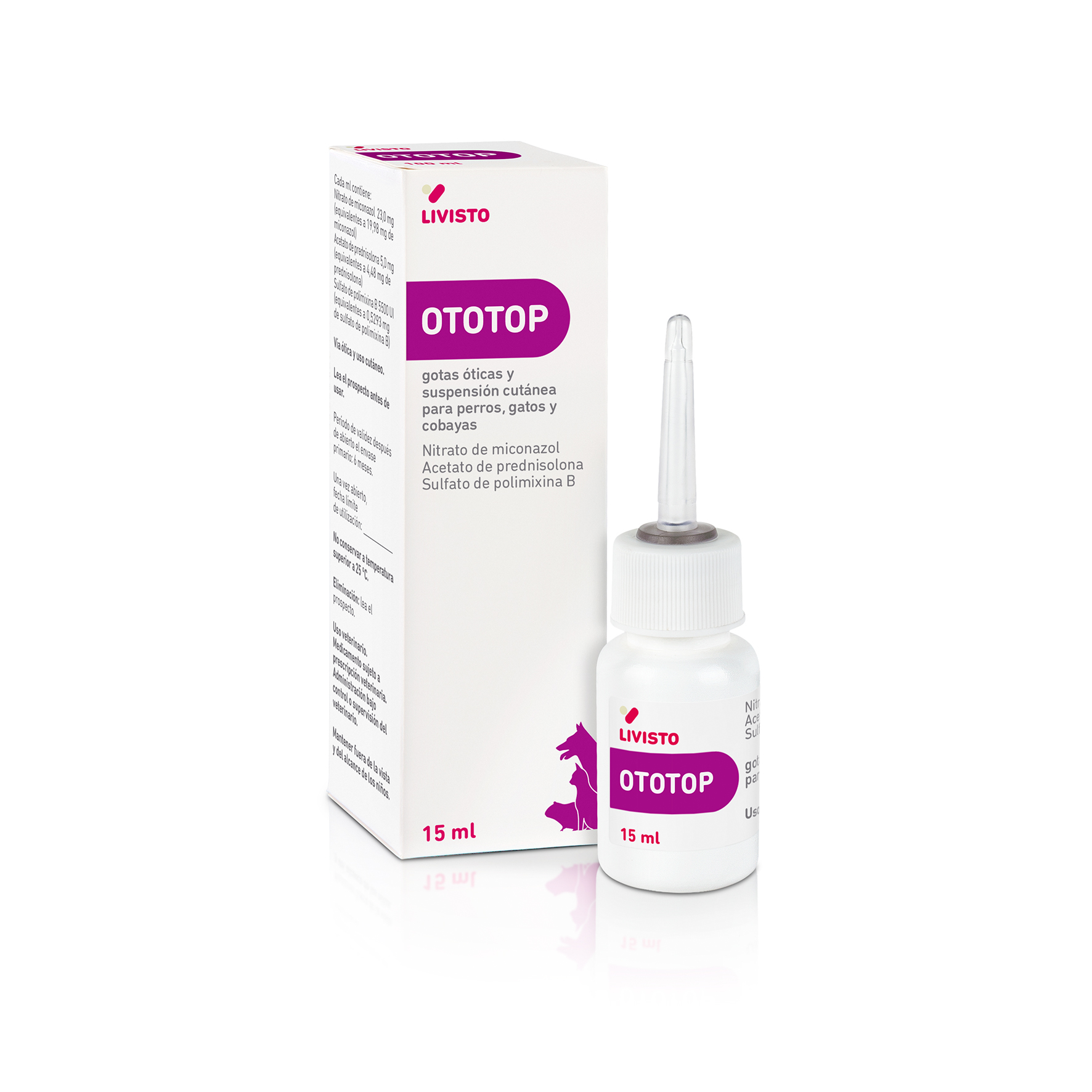- OTOTOP Gotitas Óticas 15 ML es un tratamiento veterinario eficaz para infecciones del oído y la piel en perros, gatos y cobayas.