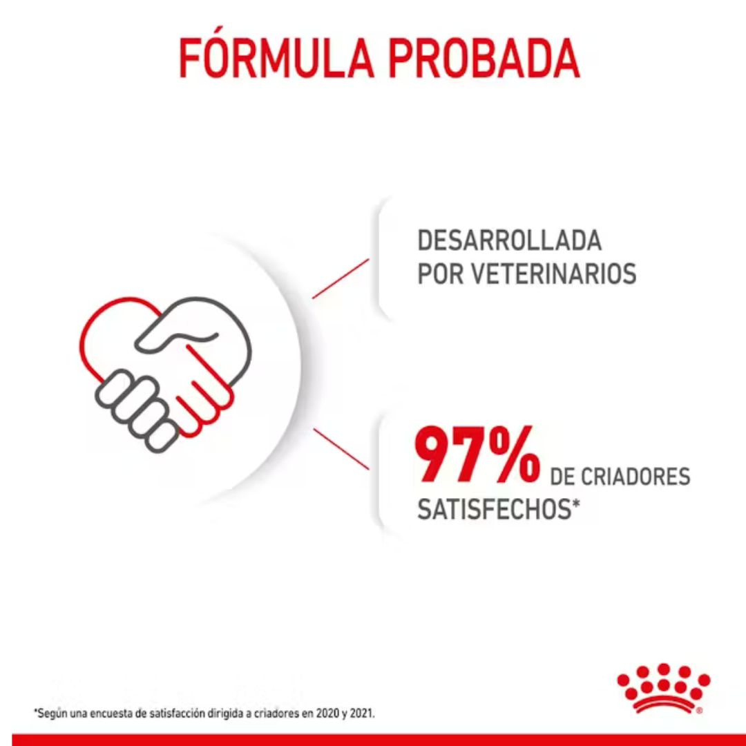 - Proporciona nutrición avanzada para el desarrollo saludable del sistema inmunológico, digestivo y cerebral de los cachorros, favoreciendo su crecimiento óptimo.
